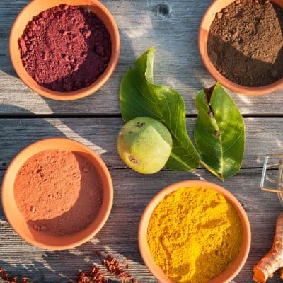 De kleurstoffen die wij gebruiken zijn 100% natuurlijk zijn gemaakt van natuurlijke kleien en plantpoeders. De kleurstoffen ontlenen zijn oorsprong aan de eeuwenoude kennis van de Maya's. Dankzij de kennis van hun omgeving en lokale materialen wisten de Maya's hoe ze anorganisch-organische hybride pigmenten konden creëren.
