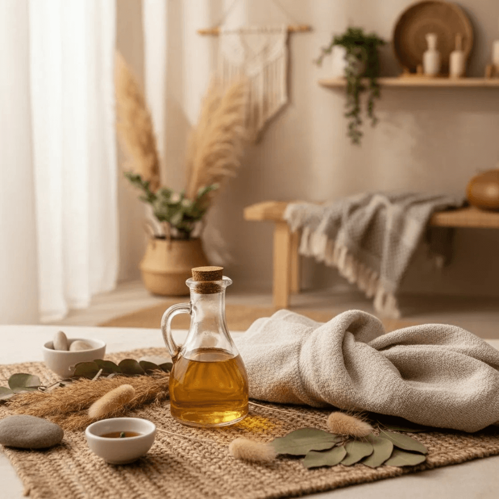 Dit is het moment om de prikkels van de dag los te laten, je zenuwstelsel te kalmeren en je lichaam en geest voor te bereiden op een diepe, herstellende slaap. Warmte en olie zijn hierbij je beste vrienden; ze voeden, aarden en creëren een gevoel van geborgenheid. Zie het als jezelf liefdevol instoppen voor de nacht.