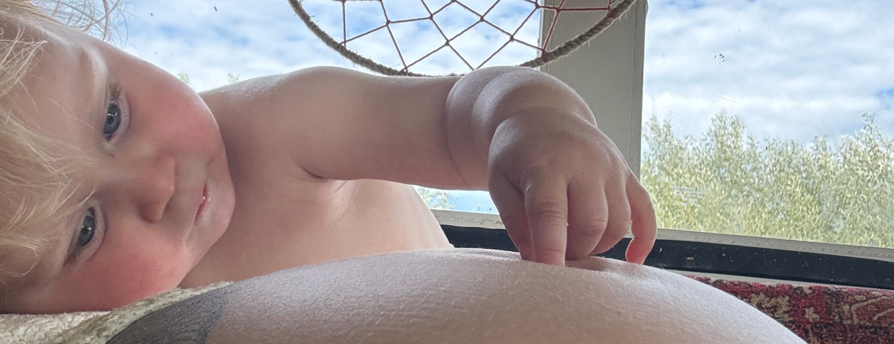 Mijn eerste bevalling, van Aya, was een marathon van 24 uur. Een diepe les in loslaten en wilskracht. Door de lange, intense pijn kon ik de ontspanning niet vinden en schoot mijn lijf in de overlevingsstand. Het eindigde in het ziekenhuis met een ruggenprik, ver van hoe ik het me had voorgesteld. Maar zelfs daar, op dat onverwachte pad, voelde ik die oerkracht en is het me gelukt om een keizersnede en vacuümpomp en allerlei toeters en bellen te voorkomen. Een overwinning op zich.